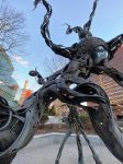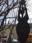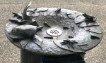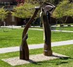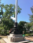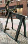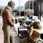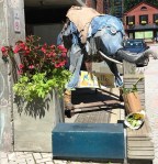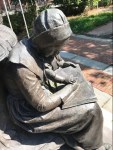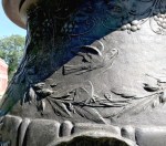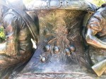 - Two bronze plaques on the sculpture’s base show Eriksson and his crew landing on a rocky shore and, later, sharing the story of their discovery.