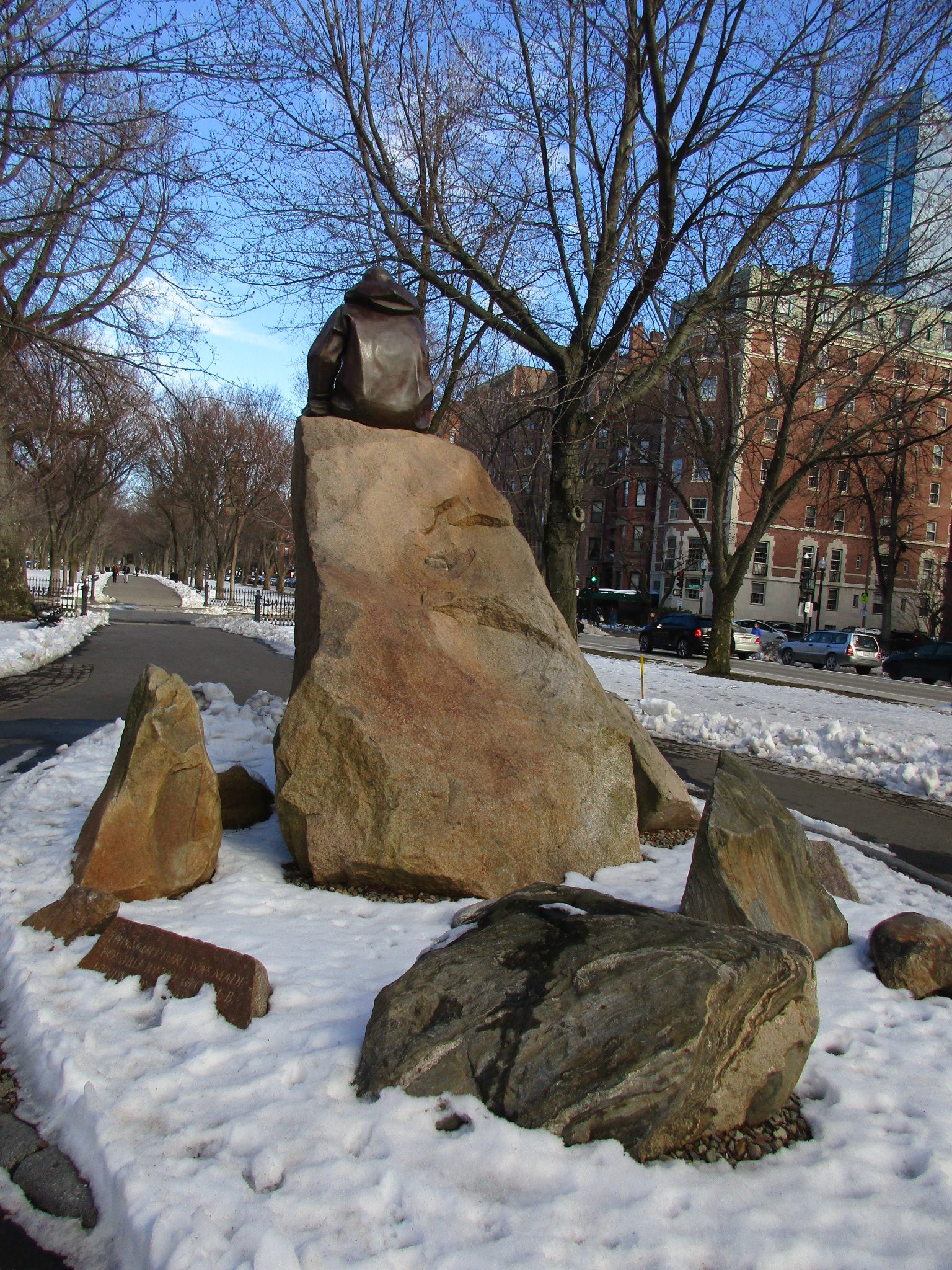 - Originally sited to overlook the Charles River, Eriksson stands atop a boulder and shields his eyes as if surveying unfamiliar terrain.