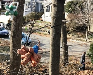 - Yellow and red sections in progress, during installation of Red, Yellow and Blue by Orly Genger at deCordova Sculpture Park