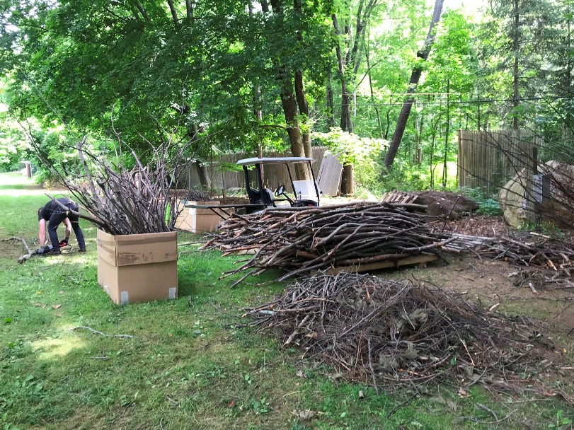 - Yellow and red sections in progress, during installation of Red, Yellow and Blue by Orly Genger at deCordova Sculpture Park