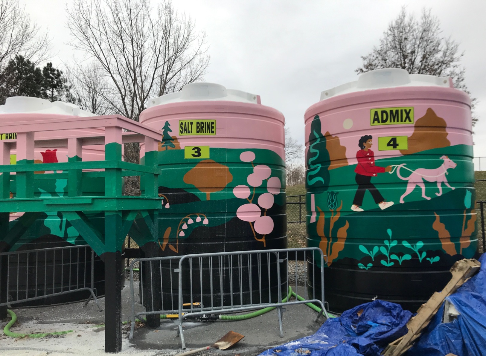 - Yellow and red sections in progress, during installation of Red, Yellow and Blue by Orly Genger at deCordova Sculpture Park