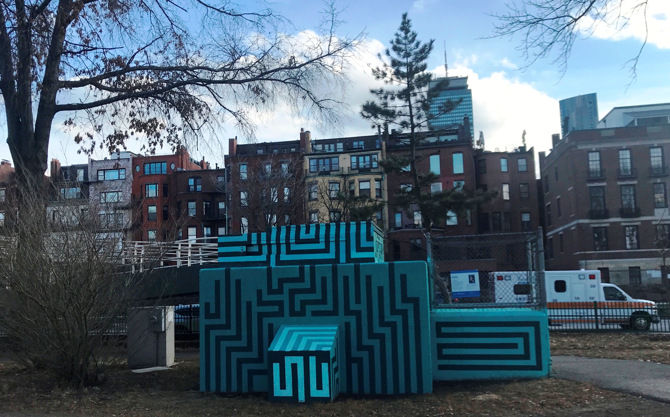 - Yellow and red sections in progress, during installation of Red, Yellow and Blue by Orly Genger at deCordova Sculpture Park