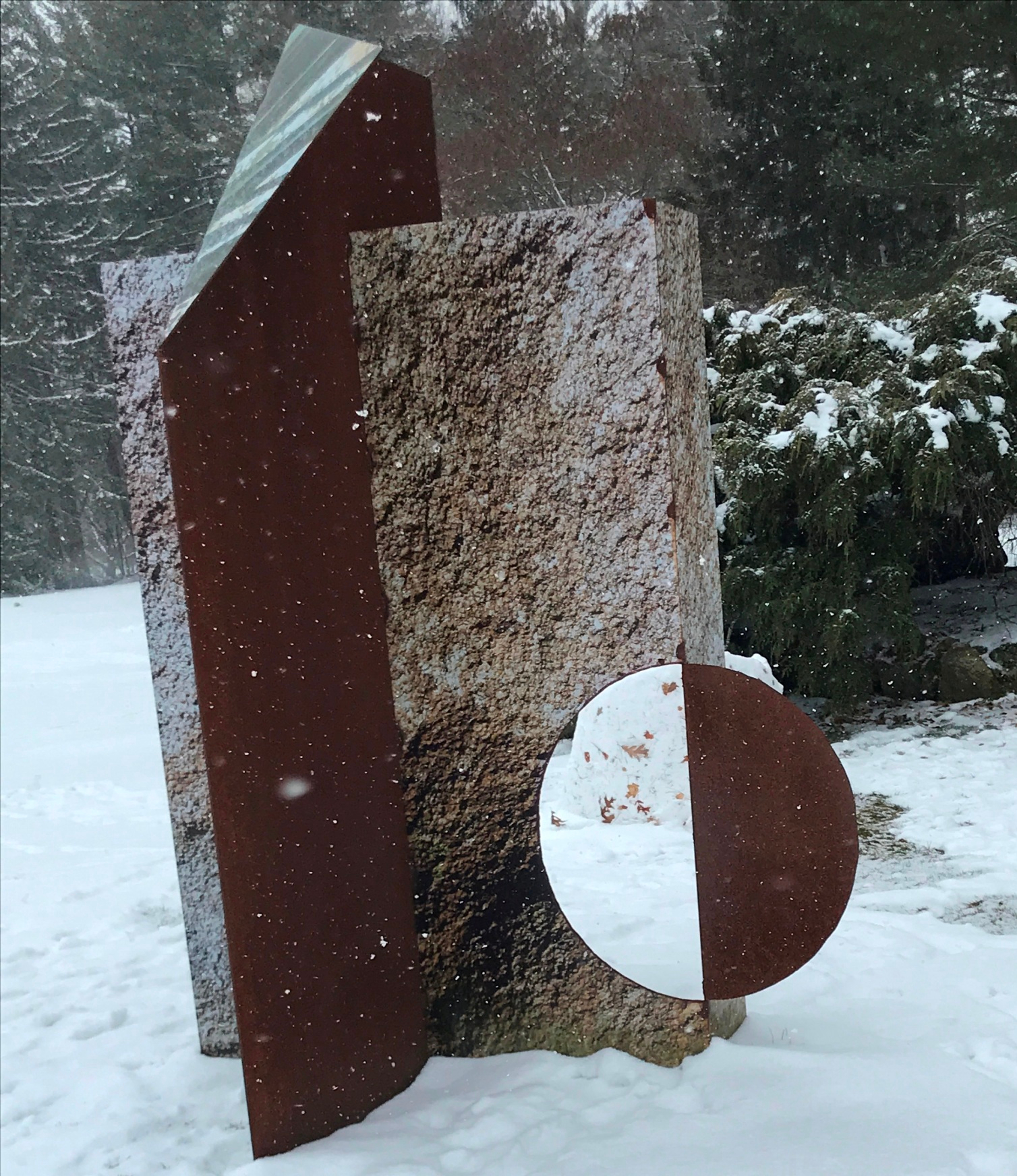 - Yellow and red sections in progress, during installation of Red, Yellow and Blue by Orly Genger at deCordova Sculpture Park
