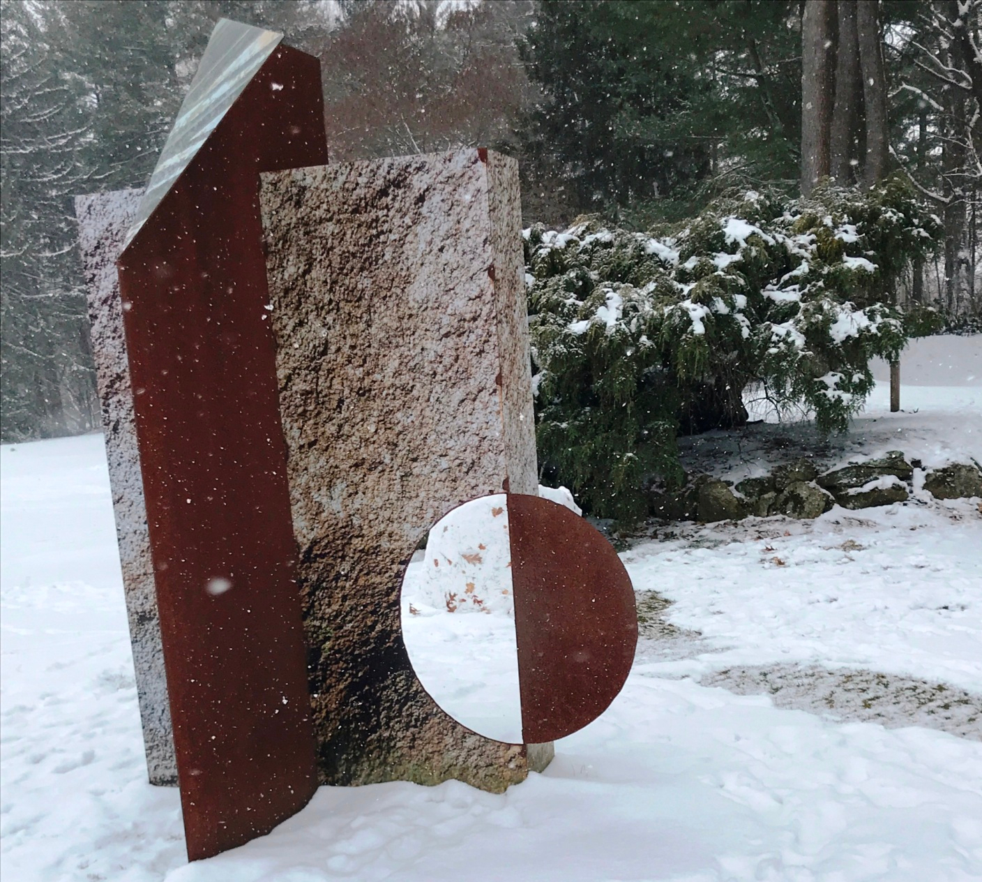 - Yellow and red sections in progress, during installation of Red, Yellow and Blue by Orly Genger at deCordova Sculpture Park