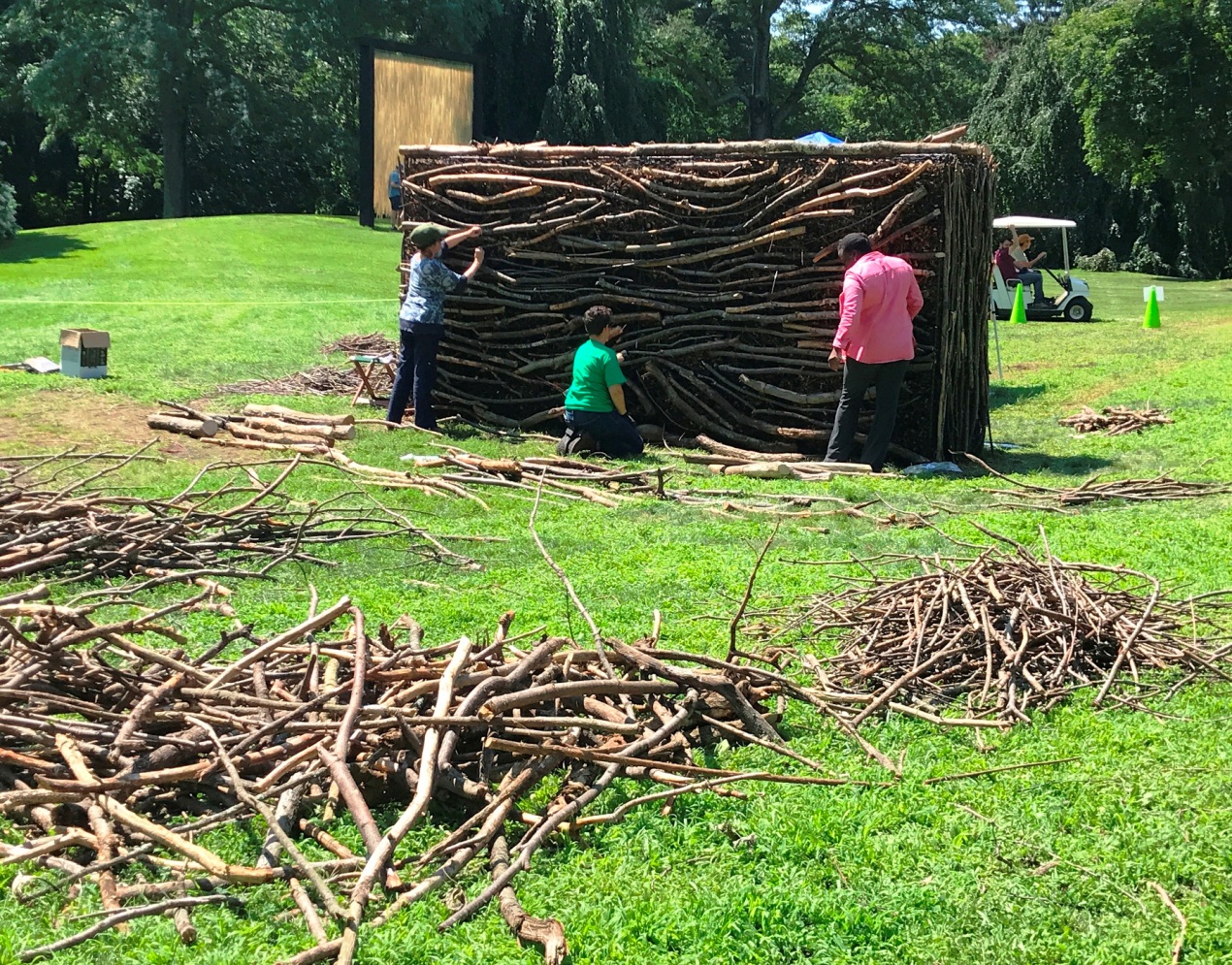 - Yellow and red sections in progress, during installation of Red, Yellow and Blue by Orly Genger at deCordova Sculpture Park