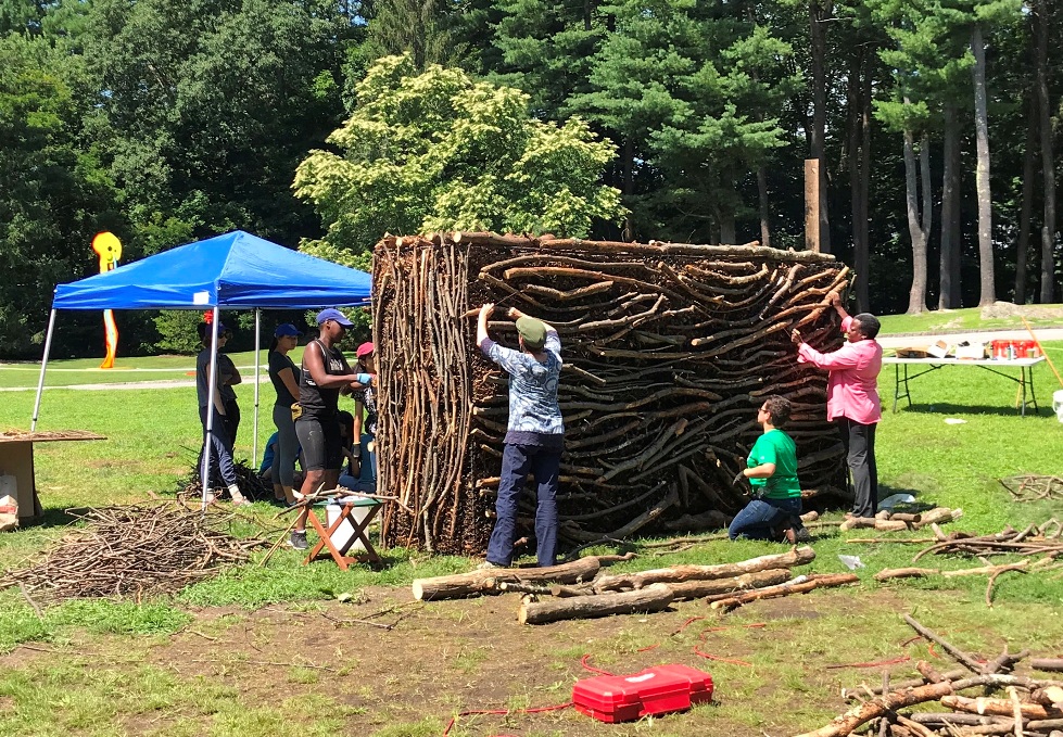 - Yellow and red sections in progress, during installation of Red, Yellow and Blue by Orly Genger at deCordova Sculpture Park