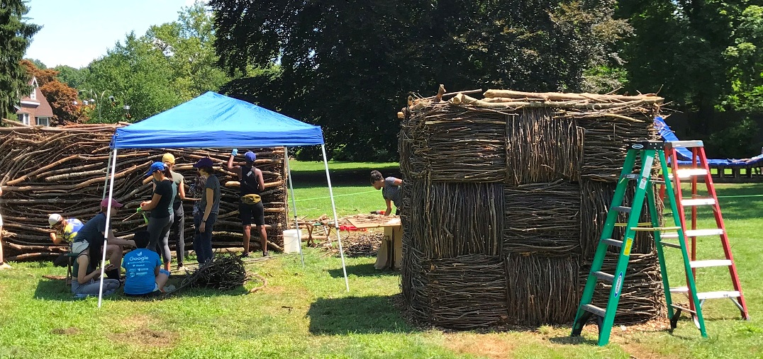 - Yellow and red sections in progress, during installation of Red, Yellow and Blue by Orly Genger at deCordova Sculpture Park