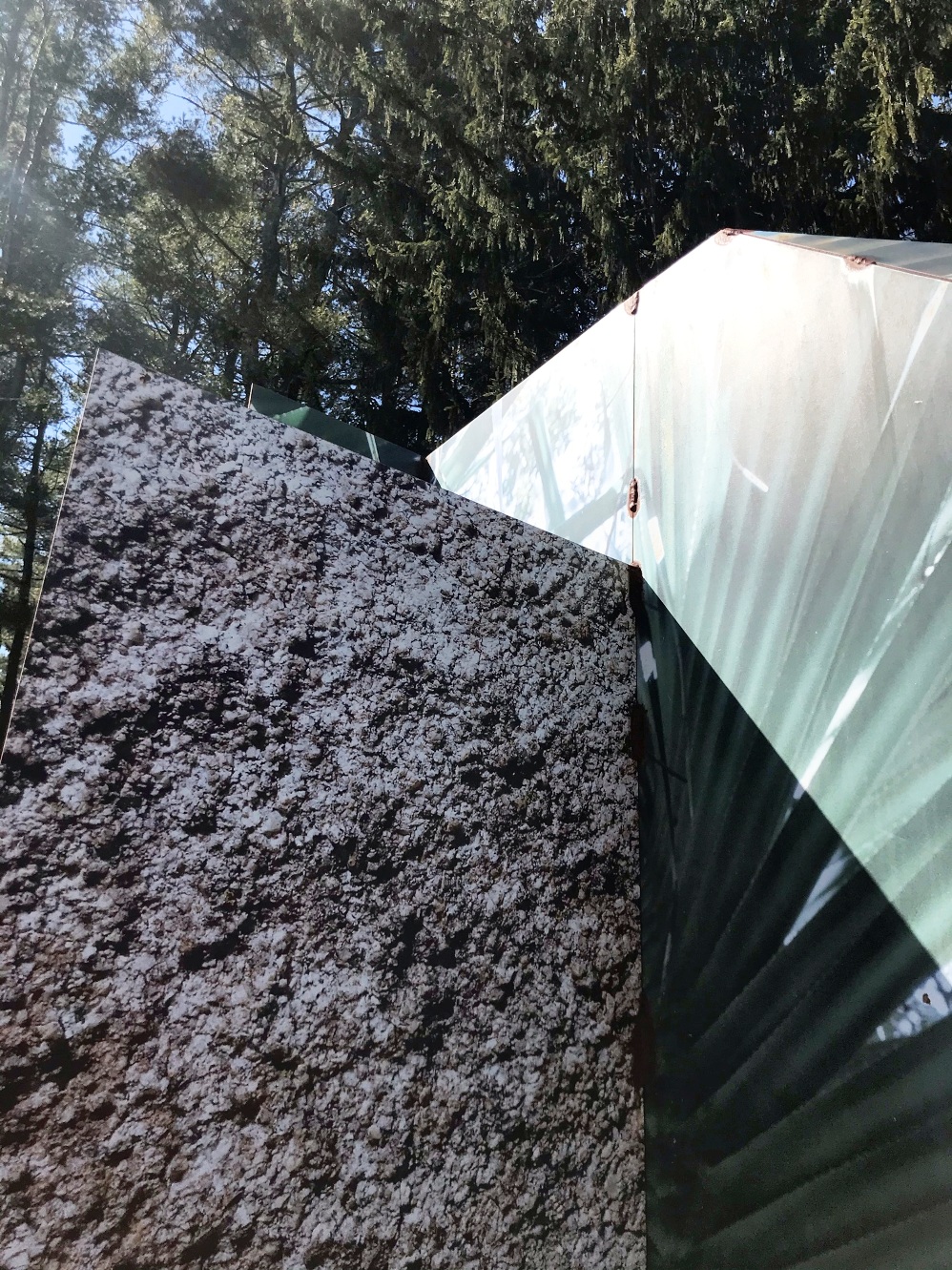 - Yellow and red sections in progress, during installation of Red, Yellow and Blue by Orly Genger at deCordova Sculpture Park