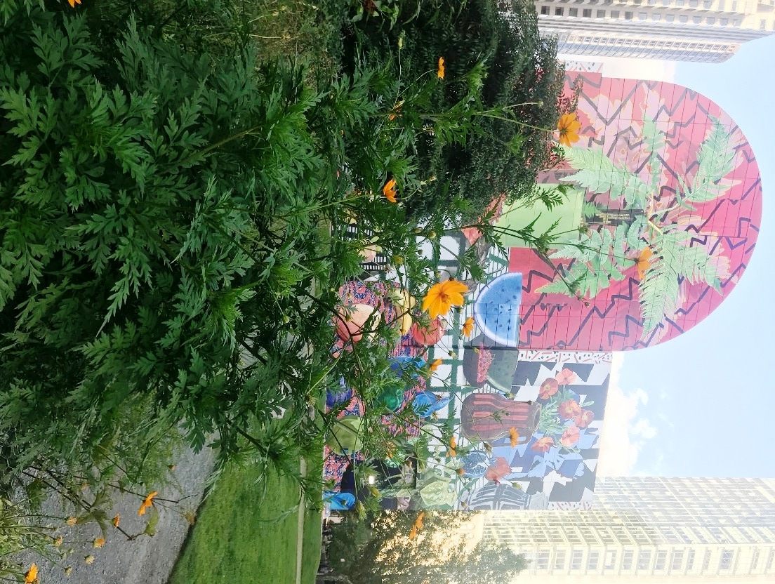 - Yellow and red sections in progress, during installation of Red, Yellow and Blue by Orly Genger at deCordova Sculpture Park