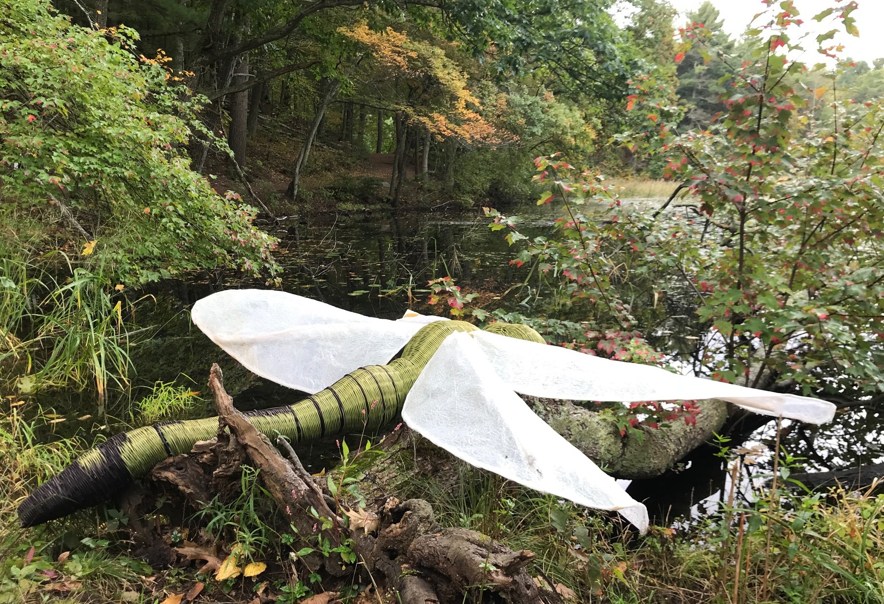 - Yellow and red sections in progress, during installation of Red, Yellow and Blue by Orly Genger at deCordova Sculpture Park