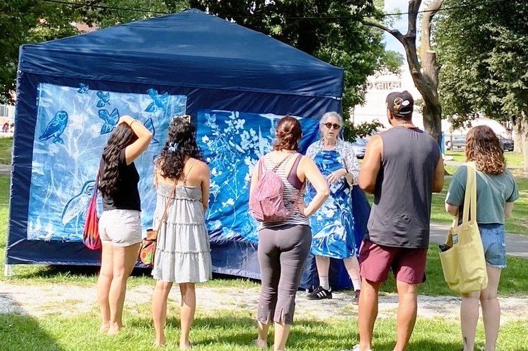 - Yellow and red sections in progress, during installation of Red, Yellow and Blue by Orly Genger at deCordova Sculpture Park