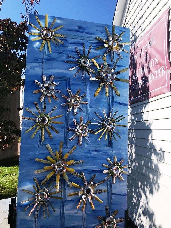 - Yellow and red sections in progress, during installation of Red, Yellow and Blue by Orly Genger at deCordova Sculpture Park