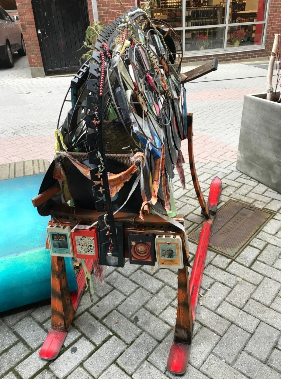 - Yellow and red sections in progress, during installation of Red, Yellow and Blue by Orly Genger at deCordova Sculpture Park