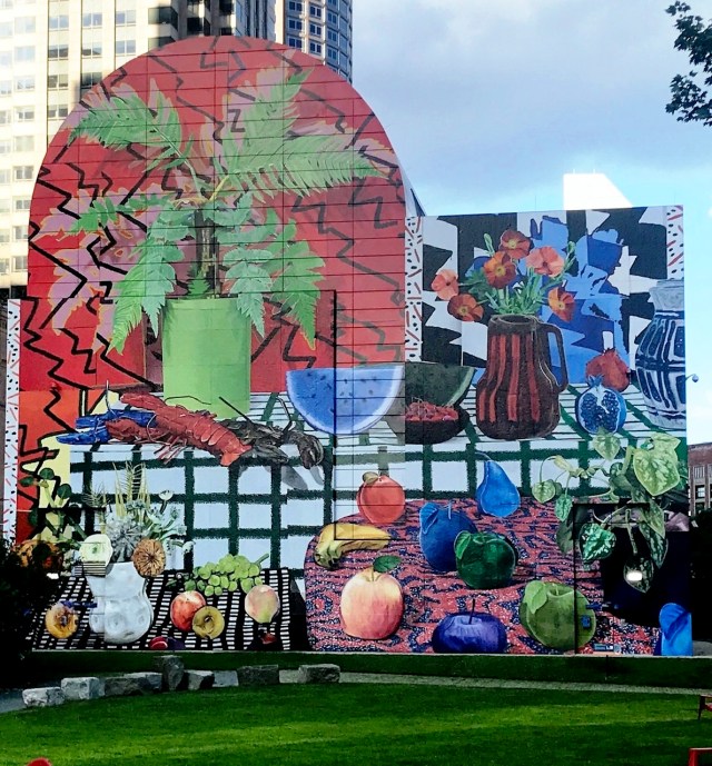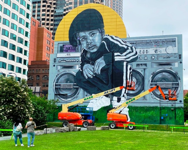Though I visited and photographed Daniel Gordon’s art on the Greenway in 2021, I didn’t get to post about it. I kept meaning to go back for better photos and then the art was gone. But there are better photos and valuable perspectives in the Key Resources from Wonderland, WBUR, and Daniel Gordon’s own website, all quoted and listed here. Also now I want to document the transformations created by all nine Dewey Square murals in the past ten years.