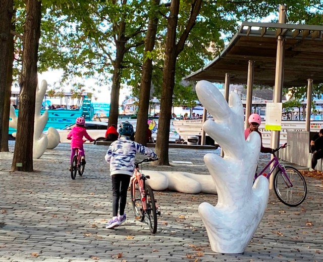 Enticed by a notice from NOW+THERE about the current installation of Claudia Comte’s Five Marble Leaves in Central Wharf Park, I visited on a sunny October morning. During a delightful half-hour documenting with my iPhone, I began to plan a first post that would convey the captivating combination of artwork and setting. I hope these photos, quotes, notes, and links meet that goal now or soon after further adventures in the park.