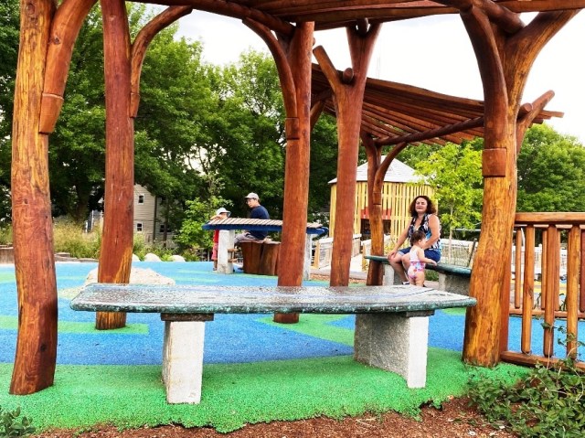 With great enthusiasm, I share my recent discoveries of three public art projects within the relatively new Louis A. DePasquale Universal Design Playground: 1. Mitch Ryerson’s “Sensory Hilltop,” 2. NuVu Studio’s “Pipe Dreams,” 3. Dominic Killiany’s paintings. Here I simply build on background in earlier ART Outdoors posts about Mitch Ryerson’s playground design, but the other two were new to me: Nu Vu Studios, the Innovation School in Central Square Cambridge, and Dominic Killiany, an artist with autism. I hope the photos, quotes, and links add to your own explorations.