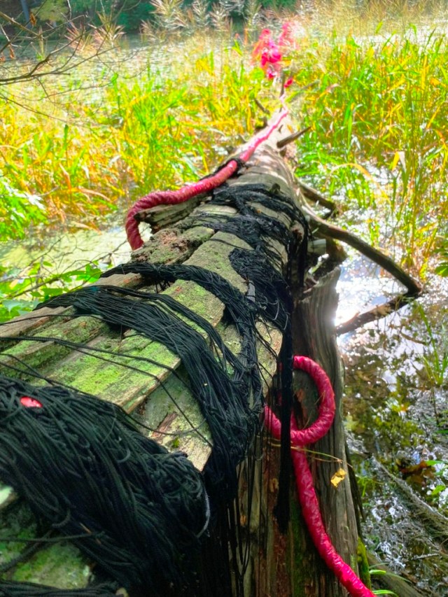 This third post completes the series of related posts for 2022 ART RAMBLE, “In the Balance,” with photos, quotes, and links for three more of the eleven artists* (four more of the seventeen installations*). The first post includes an overview. All three note the curator talk on October 16 and other valuable resources. Whether I post again before the final day, November 19, I intend to revisit and reflect on significant connections between the forest and the artworks!