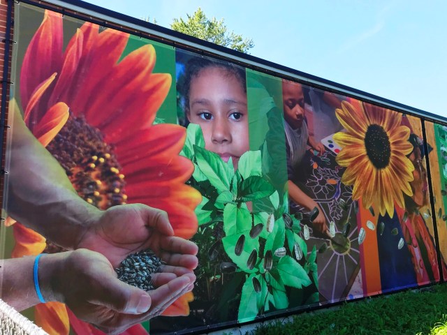 My visit to “Honoring the past, seeding the future,” the newest Grove Hall murals, extended my own range of travel after too long a time. Simply walking a few blocks around their location (on and near 345 Blue Hill Avenue) offered such an abundance of promising connections that I must now choose a few of many for focus in this post. Here are the chosen three.