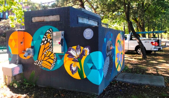 More than a year ago, three artists adorned all sides and surfaces of three different pumphouses on the Esplanade. I had meant to connect and celebrate these accomplishments at that time. Now at the start of a new year, I can do that with additional appreciation of their presence. Though pumphouses along the Charles River have always been essential in regulating water drainage, their cement block structures were neglected and defaced until funds from the Esplanade Association allowed artists to transform their appearances in 2019.