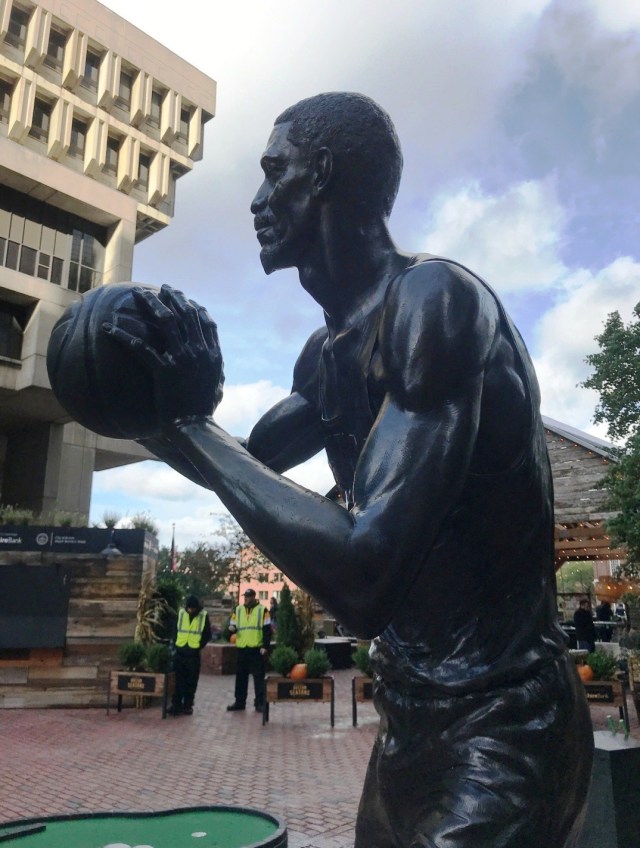 My answer to the title question: Both have statues created by women artists in Boston: Poe by Steff Rocknak and Russell by Ann Hirsch. The dedicated, thorough approach of each artist to her subject links both stories of how their artworks came to be.