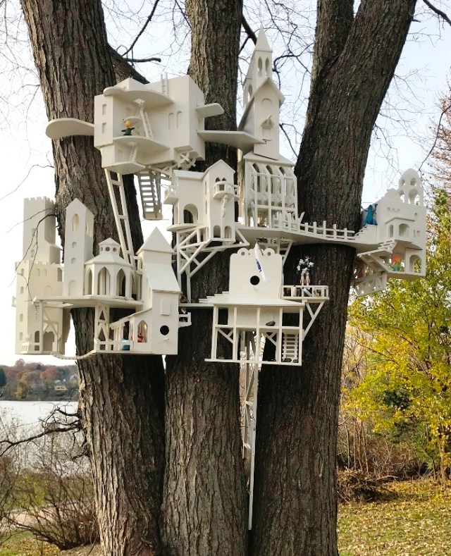 After two visits in the past month, I hope to make many more in the three seasons ahead before Colony leaves its maple tree on the Minuteman Bikeway. The photos in this post are mine but the links below will lead to more varied and vivid ones, including the installation process. The quotes below also give background about Christopher Frost and will suggest why I have seized the opportunity to share my enthusiasm for his spirited splendid sculpture!