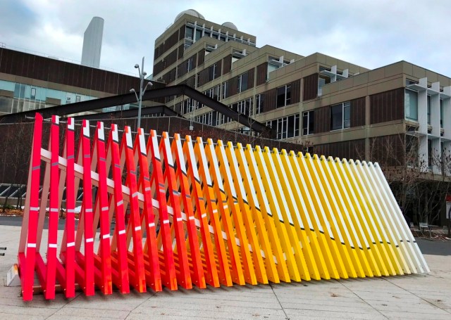 Installed on Harvard’s Science Center Plaza in October, David Buckley Borden’s artwork asks us to read, look, walk, sit, think and revisit until December 7.