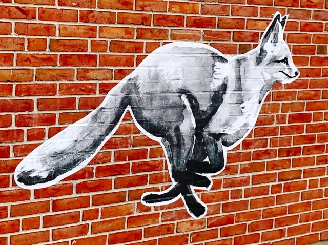 Almost caught up with some recent temporary art, I’ll share some views of three murals in my home city, Cambridge. Two, by Be Sargent, have been here for nearly twenty years. One, by David Fichter, has been for fourteen. All three begin above eye-level, so I had seldom made eye contact with the animals or people depicted.