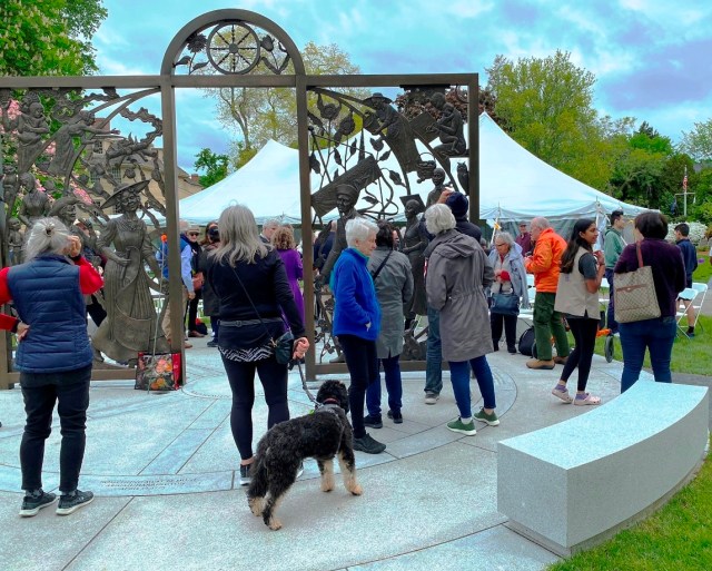 My first and only visit to the monument so far was for the artist’s enlightening talk on Dedication Day, May 18. I plan to return often, eager to absorb everything sculptor Meredith Bergmann’s amazing artwork offers. Meanwhile here are quotes, resources and a few photos to guide your own visit, online or in person.