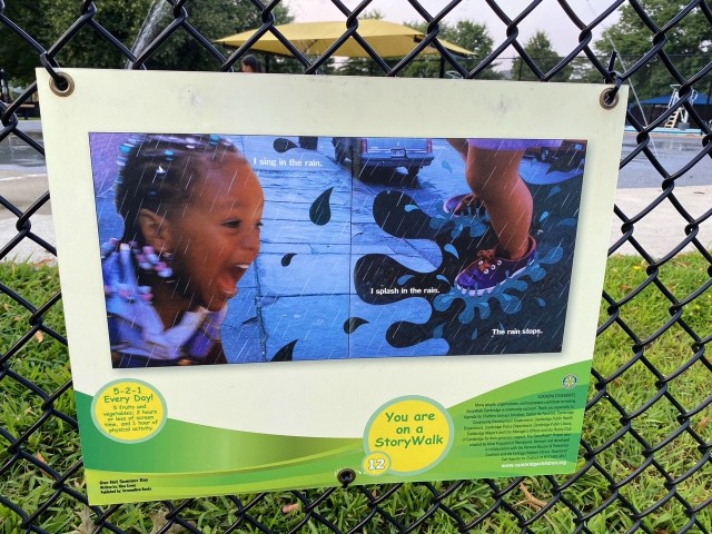 This post is a quick follow-up to STORYWALKS DISPLAY BOOK ARTS IN PARKS WORLDWIDE, INCLUDING CAMBRIDGE with two examples of the eight StoryWalks in Cambridge listed for this summer, 2024. Placement of book pages at children’s eye levels along fences around playgrounds helps relate their outdoor play to themes of selected books.