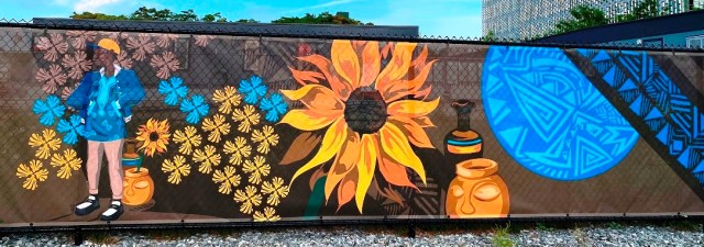 *”ART SCRIM is a temporary outdoor gallery program that highlights local artists by turning construction fencing around Barry’s Corner into a platform for sharing art. “