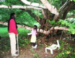 - “Leave a Trace” by Bettina Turner (chalk spray,colored chalks, hollow tree)